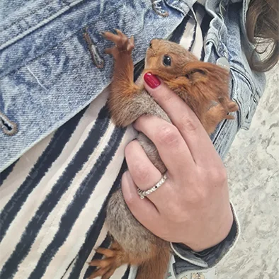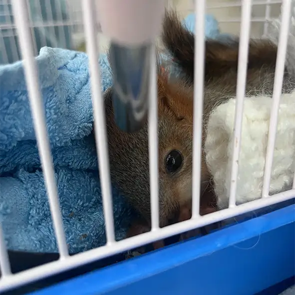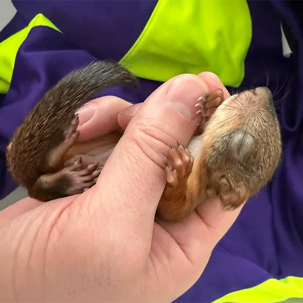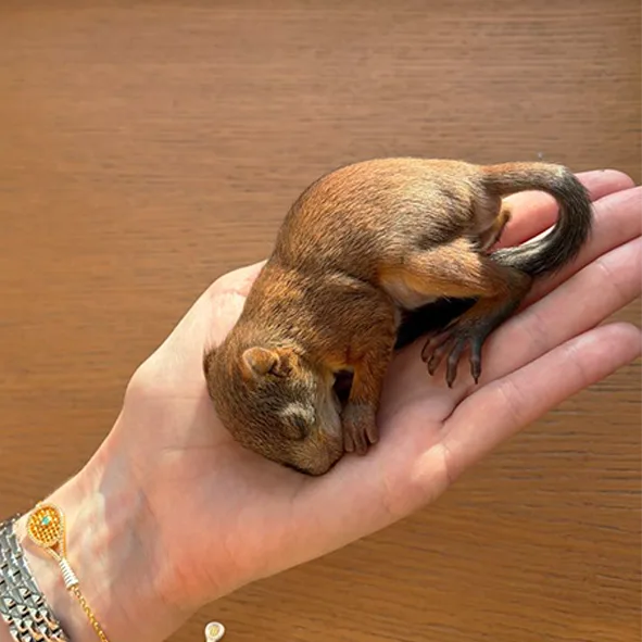 Скворечник упал вместе с бельчатами. Выжил один, экстренно доставлен в ПБС