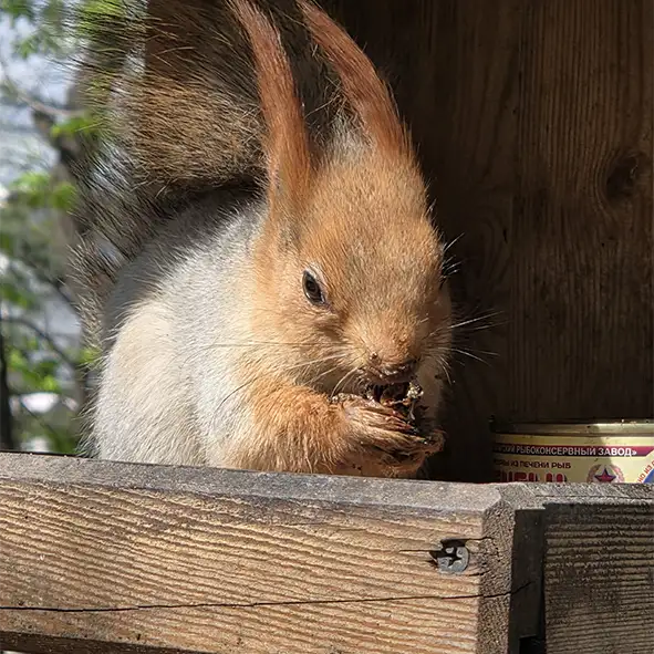 Нашли на дачном участке, белки долго не было. Сейчас на выкорме у нашего волонтера
