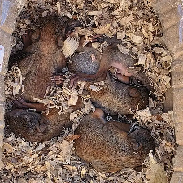 На предприятии разрушили гнездо. Белка убежала. Переданы на выкорм местному волонтеру