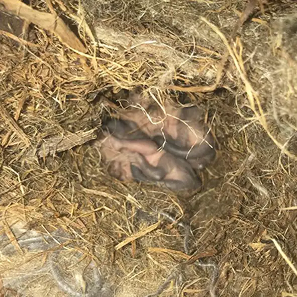 Обнаружены во дворе дома, через некоторое время белка-мать забрала в гнездо