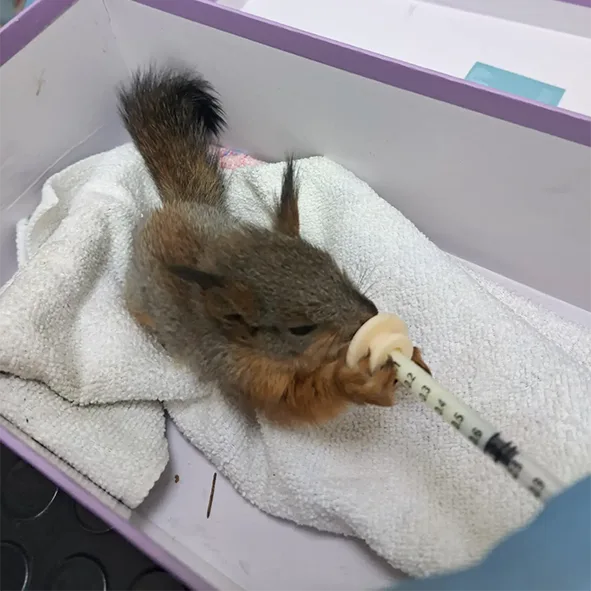 Люди нашли бельчонка без мамы. Сейчас выкармливают самостоятельно