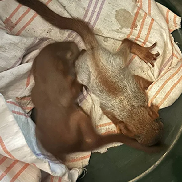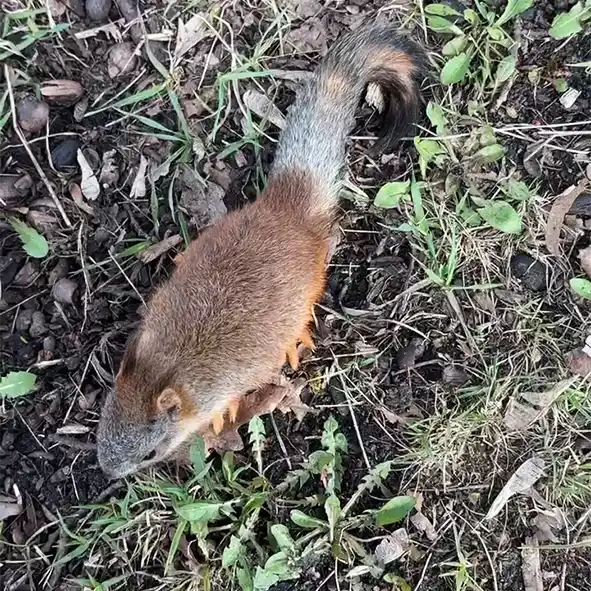 Взрослая белка, получила травмы при невыясненных обстоятельствах. Спасти не удалось