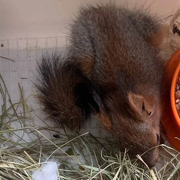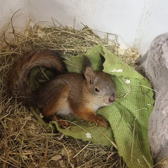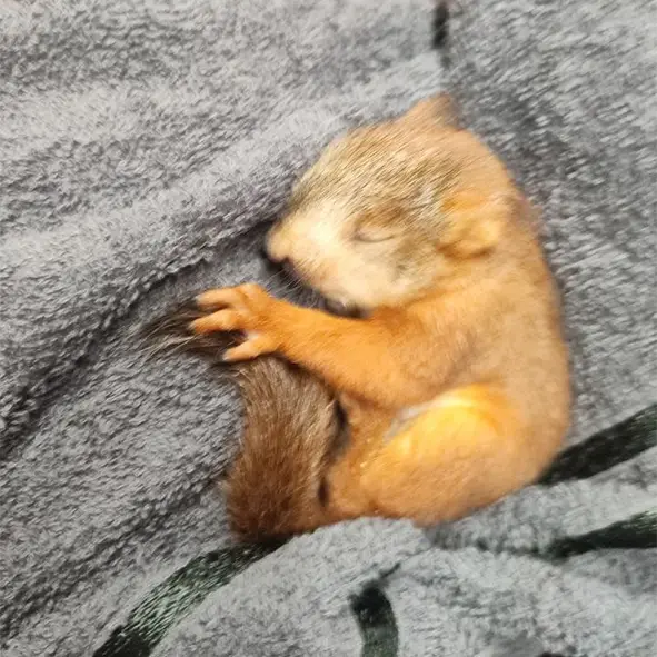 Белка забыла бельчонка в гнезде при переносе. Нашедшие передали нам на выкорм