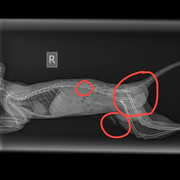 Поступил в ПБС с повреждениями задних конечностей. Терапия не помогла