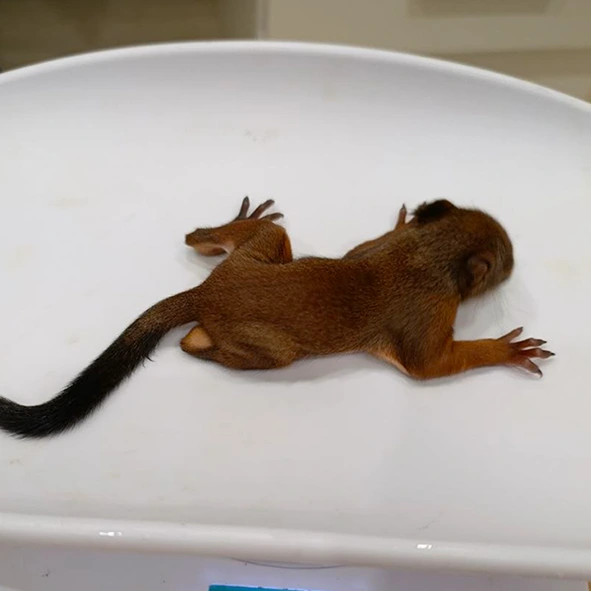 Люди нашли бельчонка. Кормили два дня коровьим молоком. Обратились поздно, не выжил