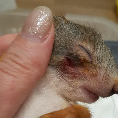 Нашли на поляне. Белка мать не пришла. ЧМТ. Спасти не удалось