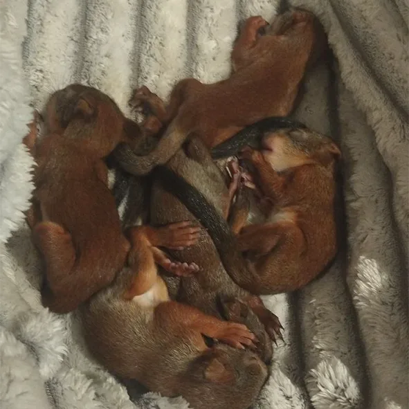 Отбились от мамы-белки. Потерялись. Отправлены на докорм к местному волонтёру